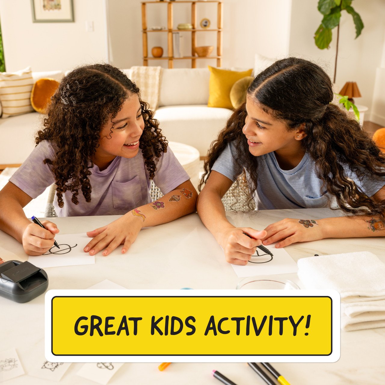 2️⃣ Print & Color: Within seconds, your design is printed. Use the included skin-safe markers to add a splash of color.